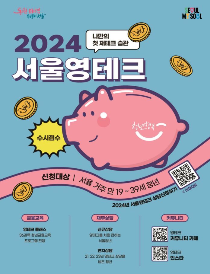 서울시가 수입관리 방법을 모르거나 경제관념이 부족한 서울 청년들을 대상으로 전문가가 체계적으로 자산형성을 도와주는 ‘2024년 서울 영테크’ 프로그램을 시작한다고 밝혔다.