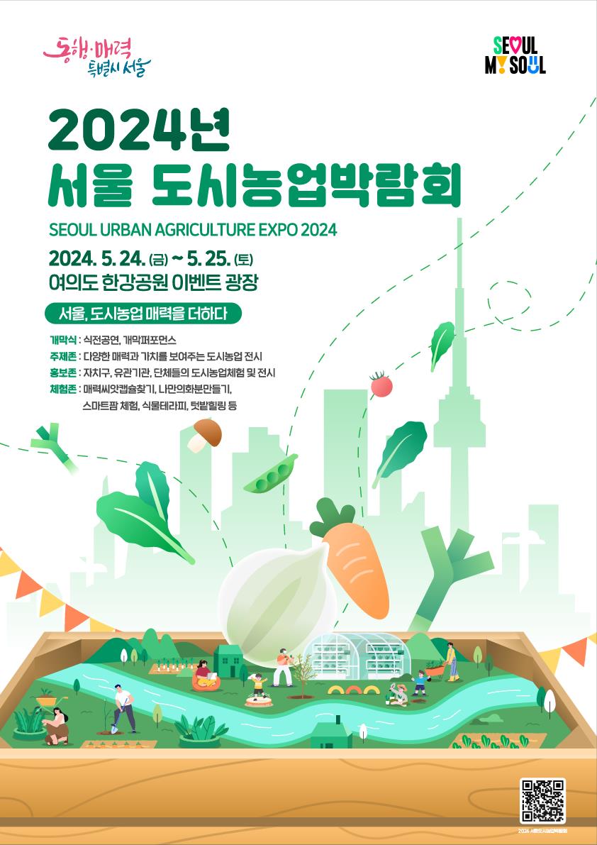 정원, 놀이터, 휴식공간 등 다방면으로 활용 가능한 텃밭 모델부터 미래농업 체험까지 도시농업의 다채로운 매력을 느낄 수 있는 「2024년 서울도시농업박람회」가 5월 24일(금)~25일(토) 이틀간 여의도한강공원 이벤트 광장에서 열린다.