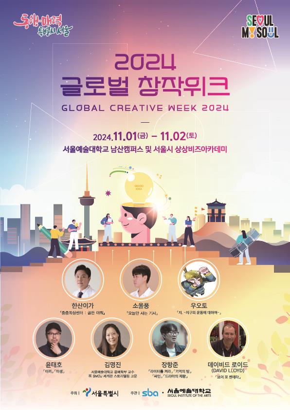 서울시는 오는 11월 1일(금)부터 2일(토)까지 양일간 서울예술대학교 남산캠퍼스 및 서울시 상상비즈아카데미에서 K-콘텐츠 창작자의 경쟁력을 강화하는 ‘2024 글로벌 창작위크’를 처음으로 개최한다고 밝혔다.