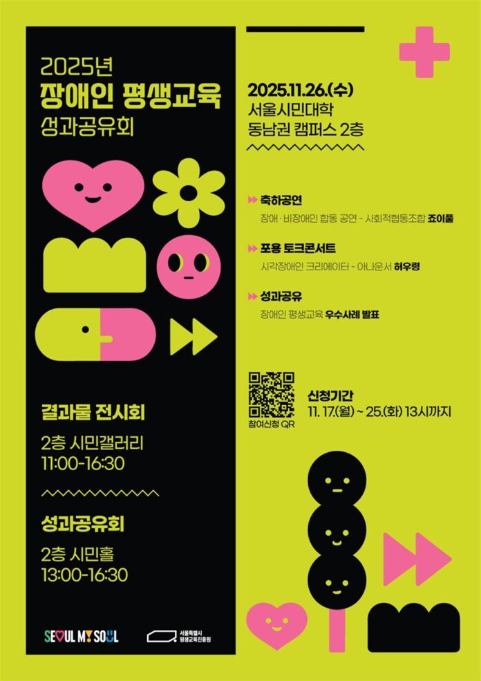서울시평생교육진흥원(원장 한용진)은 지난 11월 26일(수) 서울시민대학 동남권 캠퍼스에서 올 한 해 장애인 평생교육의 결실을 나누는 ‘2025년 서울특별시 장애인 평생교육 성과공유회’를 개최했다.